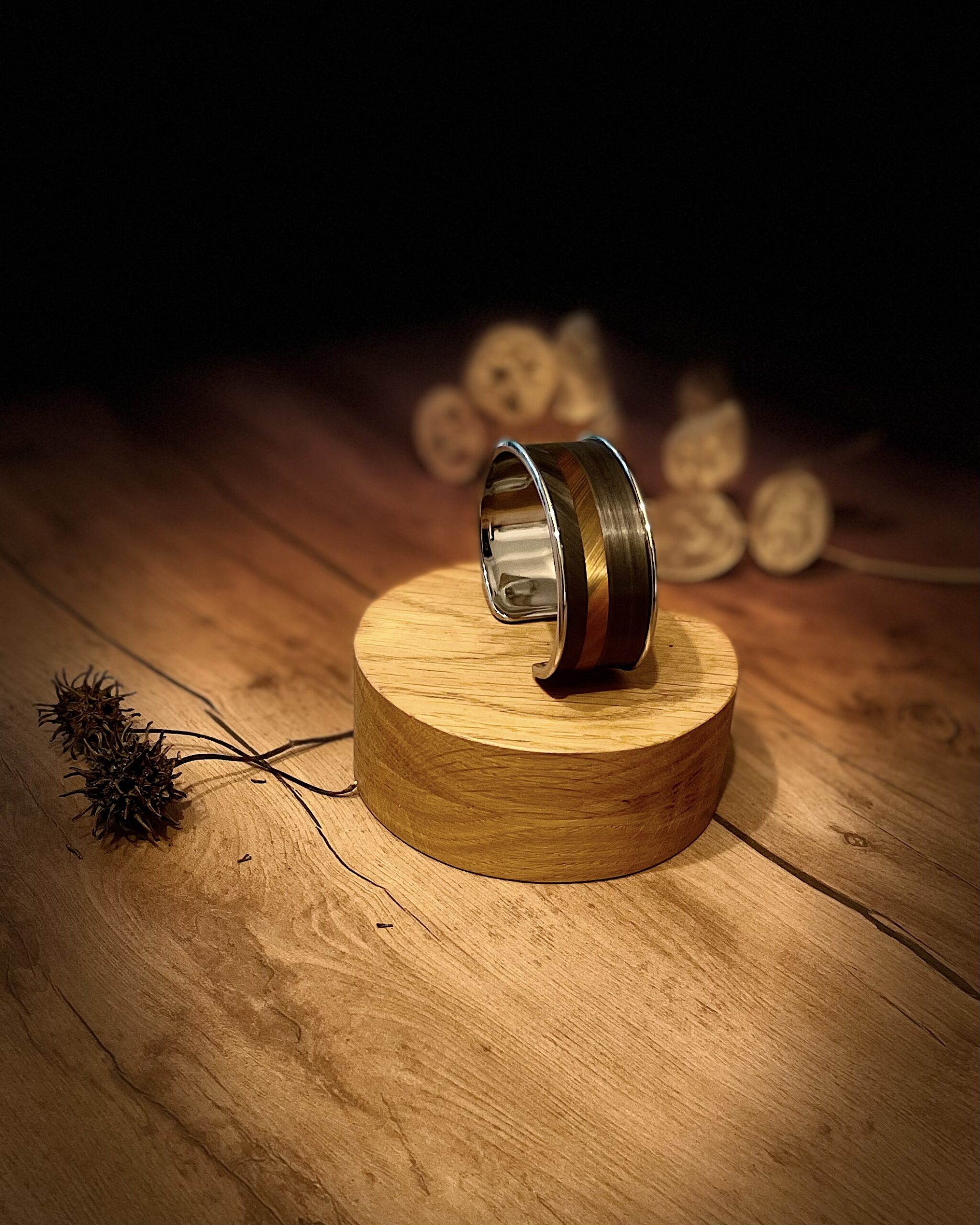Ce bracelet argent vieilli gris et marron, issu de la collection Terres d’Automne – Atelier Gahia, rend hommage aux couleurs de la saison : la brume du matin, l’écorce des arbres, les feuilles sèches aux reflets dorés.