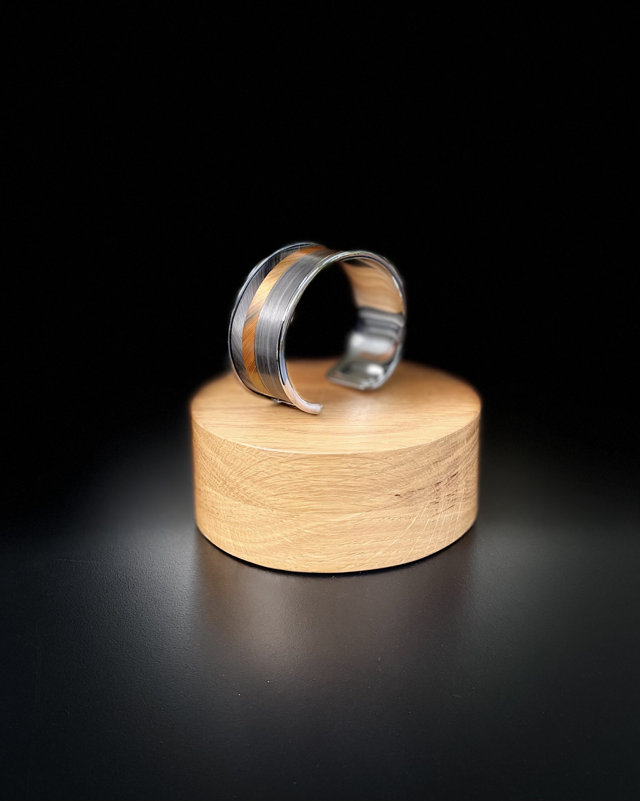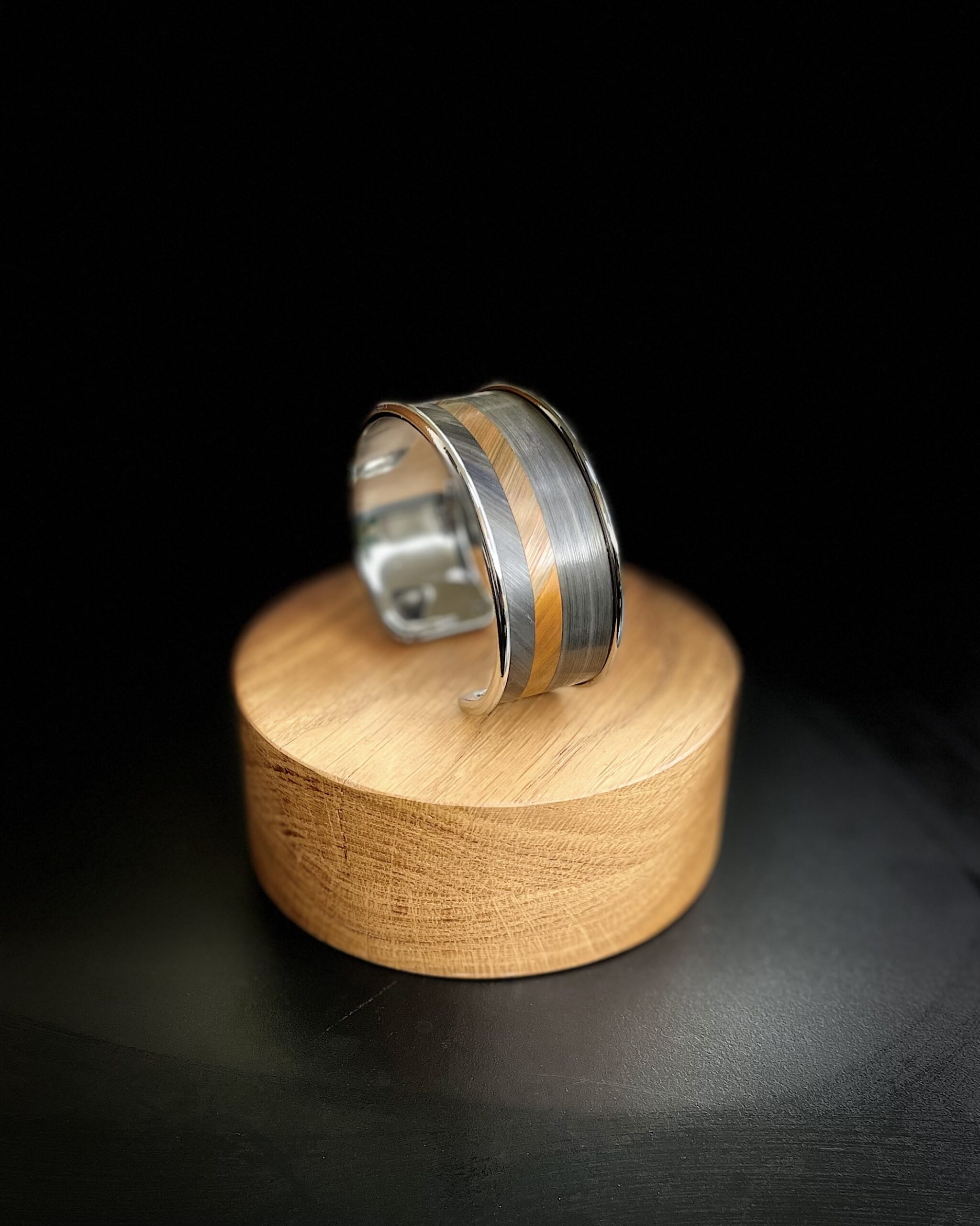 Monté sur une base en laiton argent légèrement vieilli, ce bracelet de 20 mm, résolument mixte, se porte aussi naturellement au poignet d’une femme que d’un homme. Ses lignes sobres et graphiques en font un bijou du quotidien, facile à associer, qui apporte immédiatement une touche douce, chaleureuse et élégante.